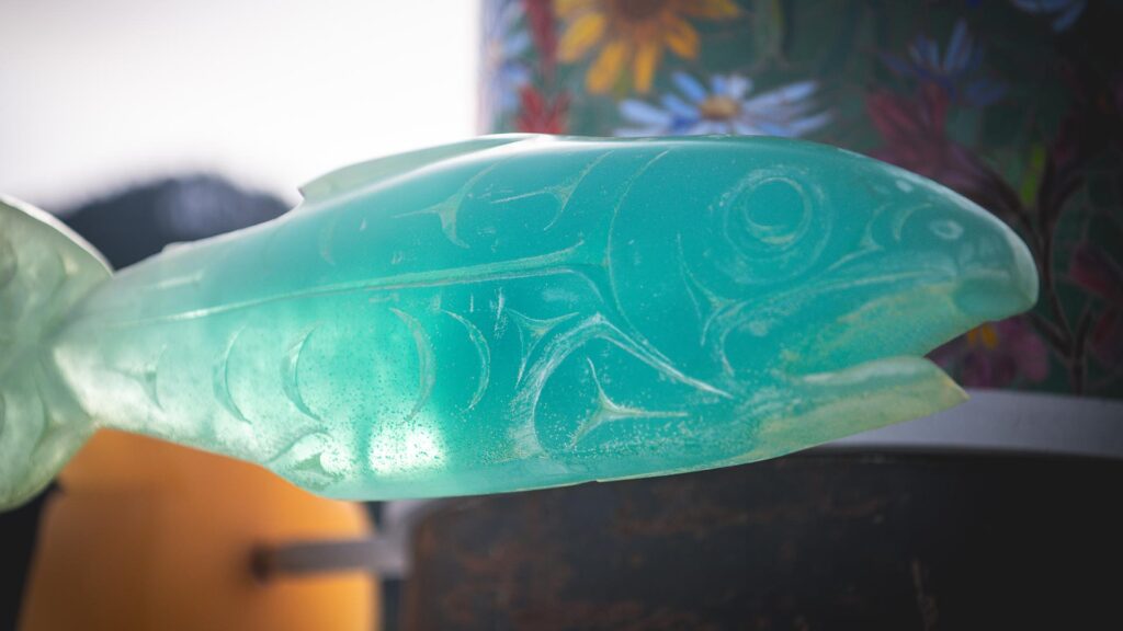 To recognize the land that Crystal Mountain occupies, Keith Stevenson, First Nations Muckleshoot traditional wood carver, collaborated with Mary to create stunning resin art figures of the animals that are in our ecosystem. Salish art incorporates different design elements and shapes to tell a story. When designing these figures, Keith emphasized the four seasons being a primary consideration. The extreme weather elements on the mountain and how quickly they can change meant there was a need to keep these figures intact year-round. Keith shared “This was different; something I had never done”. Keith started out by carving the animals from wood, and then sent them through resin, which Keith had never experimented with. The process was new and unique to him and now something that can be considered when creating future projects.