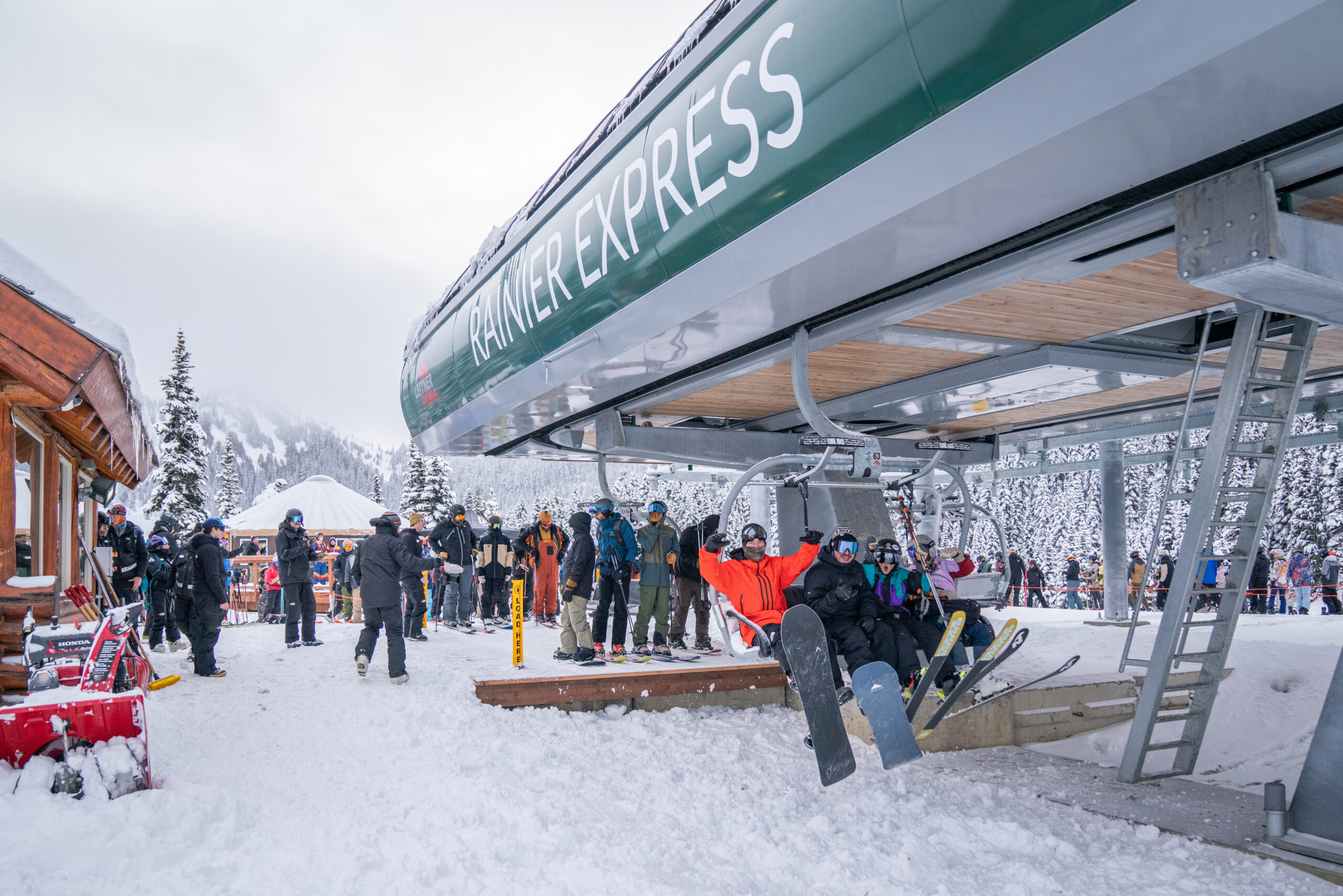 On December 21, the ol’ legend rolled back into place. Rainier Express, aka REX, is officially back from summer retirement, and the celebration started long before first chair; it began the moment we shared the news. What followed was something special: stories poured in, old photos resurfaced, and the community connected over their numerous memories. It was a sign of how much a chairlift meant to the community for so many the years, and how the new chair holds the same.