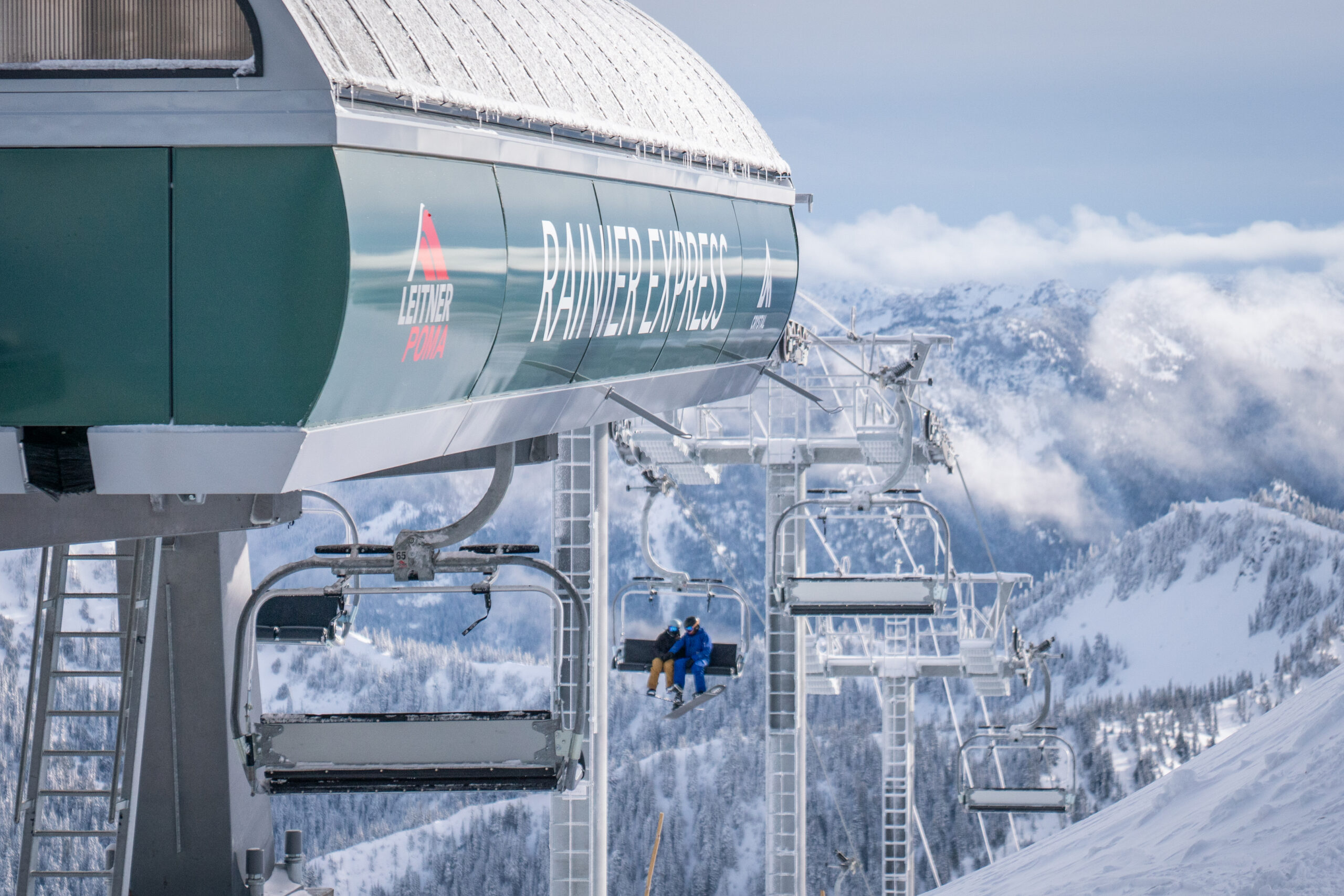 On December 3rd, after months of preparation, we put REX to the ultimate test. With 87 chairs spinning and 30,657 pounds of water loaded onto the line, Rainier Express underwent its full-capacity load test. From 7 a.m. to 4 p.m., the Leitner-Poma engineers, Crystal’s lift maintenance team, and representatives from the U.S. Forest Service monitored every detail.