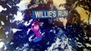 Penny Eul and John Dawg were two patrollers at Crystal in the 1970s. While Penny wasn’t the first female patroller at Crystal, Hurley Johnson patrolled for one year in the 60s, Penny was the first woman to work for several seasons. She was beloved by her co-workers and still maintains connections at Crystal. John Dawg was never considered a pillar of the ski patrol community. In fact, even today, in the ski patrol nomenclature, pulling a “John Dawg” refers to messing up in some major way. The Penny Dawgs avalanche control route was considered the easiest one in the Northback area. Penny believes she was partnered with Dawg because she was the only one who could properly “babysit” him. Penny and John were assigned to this avalanche route so many times that today it still holds their name.